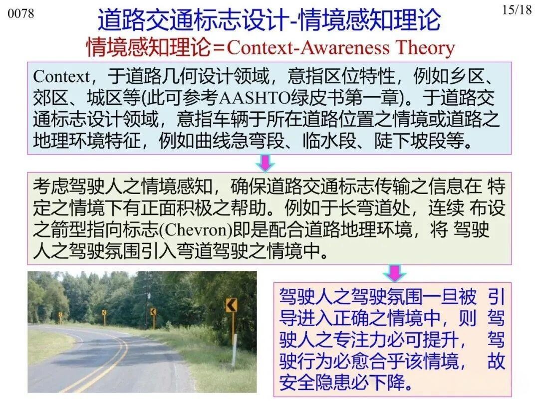 13)情境感知理論(Context-Awareness Theory):設(shè)計(jì)應(yīng)考慮駕駛?cè)说那榫掣兄_保標(biāo)志傳輸?shù)男畔⒃谔囟ㄇ榫诚掳l(fā)揮正面引導(dǎo)的作用;